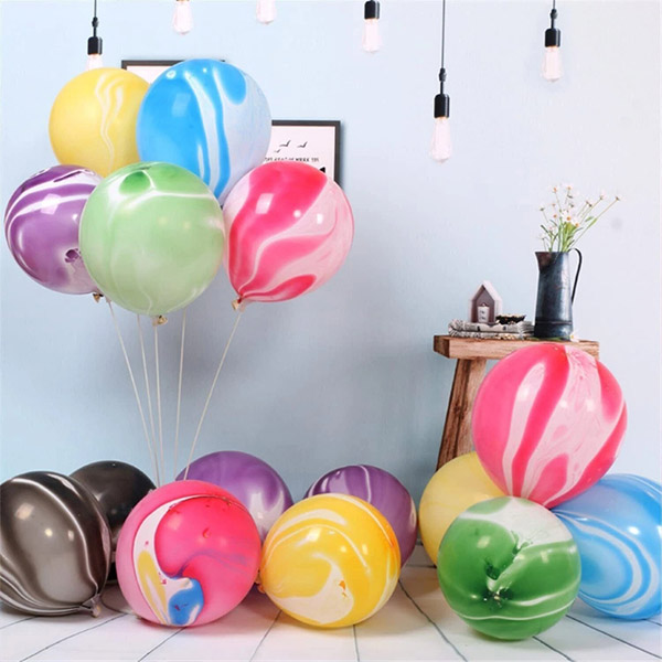 Agate Lateks Balloon wyprodukowany przez fabrykę balonu NIUN® jest wykonany z wysokiej jakości lateksu, który jest trwały i piękny, nie ma specjalnego zapachu i jest bezpieczniejszy w użyciu, więc rodzina i przyjaciele są bardziej pewni. Lateksowy balon jest łatwy do wiązania, może utrzymać napompowany stan przez długi czas i nie jest łatwy do rozbicia. Ten agatowy balon lateksowy jest dostępny w 7 kolorach, które są mieszanym kolorem, czarnym, czerwonym, fioletowym, niebieskim, zielonym i żółtym, a rozmiary mają 10 cali i 12 cali. W torbie produkujemy 100 -sztuczne balony lateksowe. Jeśli masz inne wymagania dotyczące ilości, możemy również dostosować dla Ciebie ilość każdej torby balonów z agatu. Balony lateksowe marmurowe są najczęstszymi balonami i mogą być używane na wiele dekoracyjnych okazji, aby dodać radosną atmosferę na imprezę.