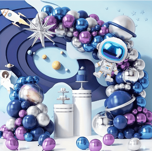 Zestaw girland z balonów foliowych z astronautami to przyciągająca wzrok broń do działań na dużą skalę, odpowiednia na ścianę w tle imprezy, układ wejścia do centrum handlowego. Dzięki łańcuszkowi balonowemu jako podstawie, balon z nadrukiem astronauty, balon foliowy w kształcie rakiety, balon z kolorową planetą i matowy balon lateksowy są przeplatane i mocowane. Garnitur wianek można zawiesić bezpośrednio na ścianie lub framudze drzwi. System kolorów głębokiego gwiaździstego nieba połączony jest z jasnym, metalicznym połyskiem, który natychmiast wypełnia wciągającą atmosferę kosmiczną i staje się wizualnym centrum uwagi miejsca aktywności.