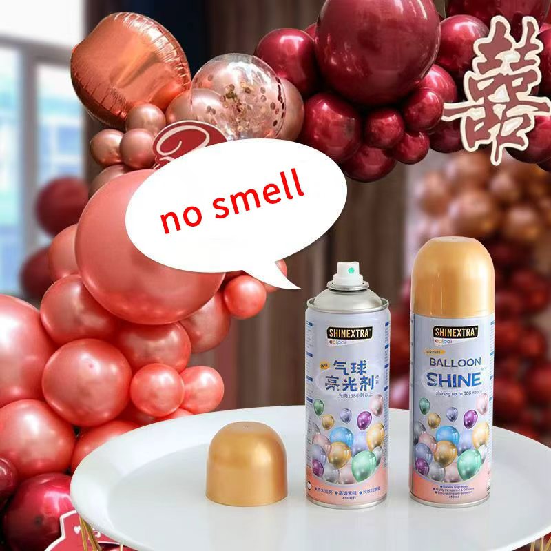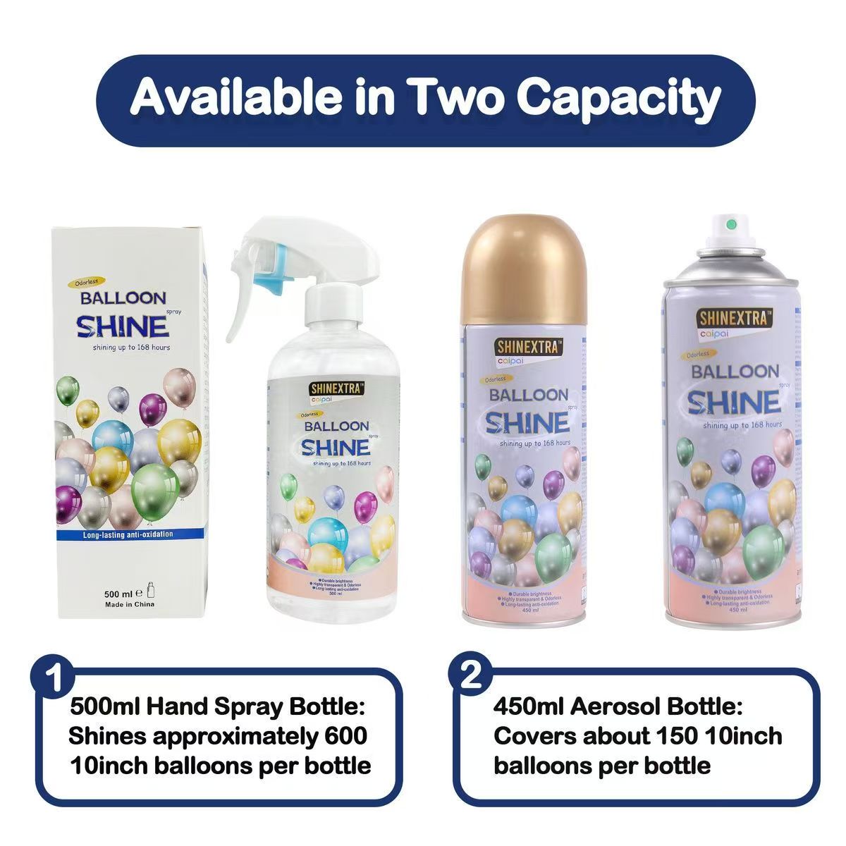 Balloon Shine Spray wykorzystuje innowacyjną formułę na bazie oleju. Jego mikromolekularna struktura szybko przenika i przylega do powierzchni lateksowej, tworząc bezproblemową folię ochronną o wysokim połysku. Traktowane balony mogą osiągnąć wzrost połysku o ponad 300%, co powoduje żywe, bogate kolory.
