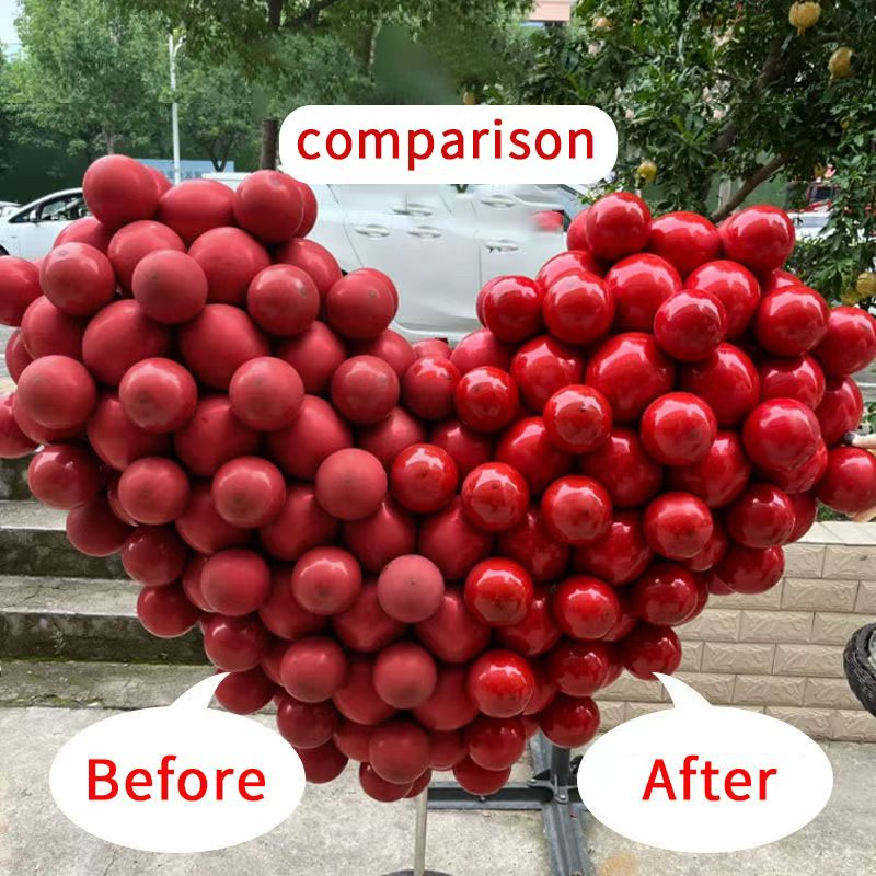Oprócz zwiększania jasności, produkt ten nieznacznie zwiększa elastyczność i wytrzymałość balonów, zmniejszając ryzyko pęknięcia od drobnych zadrapań i dodatkowo przedłużając żywotność balonów.
