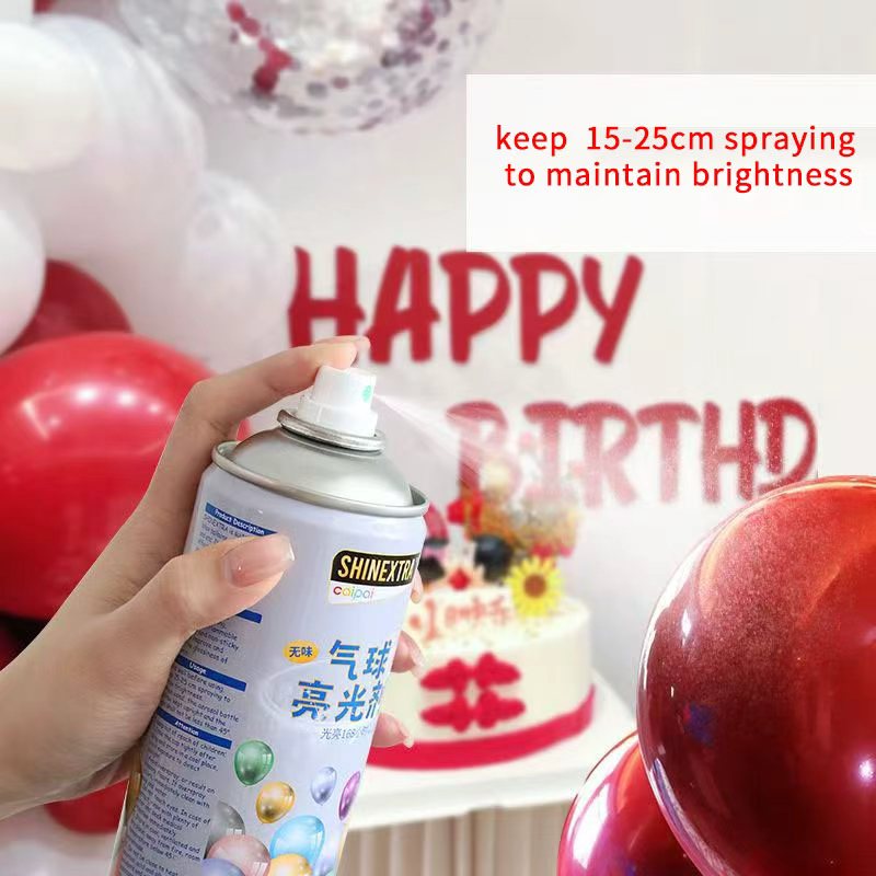 Balonowa baza oleju Shine Spray: Odpowiednie dla wszystkich rodzajów balonów lateksowych (nie zalecane do balonów folii aluminiowej). Idealny na wesela, przyjęcia urodzinowe, prysznice dla dzieci, otwory biznesowe, wyświetlacze okien, łańcuchy balonów, łuki balonowe i wiele innych.