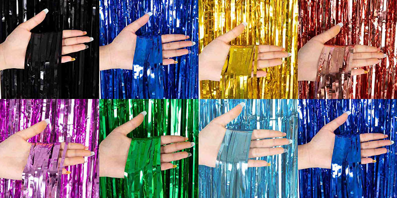Modne dekoracje na zasłony foliowe na przyjęcie urodzinowe są wykonane przez tkanie metalowych drutów o dużej gęstości. Świetnie prezentują się z mocną zasłoną. Delikatnie potrząśnij nimi, a popłyną jak wodospad. To wygląda tak pięknie. Ma wiele różnych kolorów do wyboru. Możesz wybrać szampańskie złoto, różowe złoto, srebro i inne. Jeśli chcesz, możesz także uzyskać style z blokami kolorów. Pasuje do potrzeb dopasowywania kolorów różnych scen.