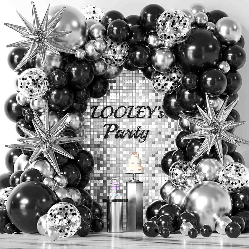 Podczas konfiguracji zestawy czarno-srebrnych girland balonowych DIY można łatwo wymieniać. Można je ułożyć w formacje łukowe, koła, półłuki i inne style tła, aby dopasować je do atmosfery. Można je umieszczać przy kluczowych wejściach, scenach, strefach kontrolnych i miejscach robienia zdjęć. Będą głównym punktem wizualnym wydarzenia. Części instalacyjne mają zwykle łańcuszki balonowe, kropki kleju, wstążki i haczyki. Użytkownicy mogą je łatwo zestawiać. Nie potrzebujesz profesjonalnych narzędzi, aby stworzyć profesjonalną konfigurację. Balony różnej wielkości ułożone są w sposób pomieszany. Czarno-srebrna girlanda balonowa ma naturalne warstwy i daje poczucie ruchu. Całość prezentuje się elegancko i w dużym stylu.