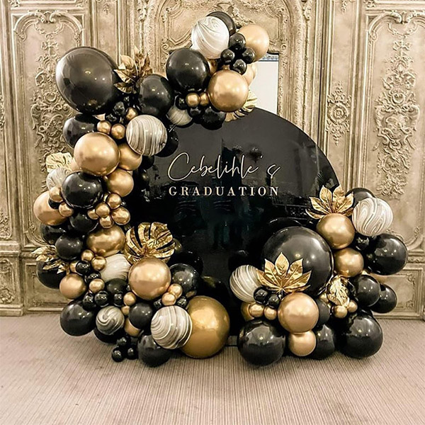 Zestaw Black Gold Balloon Garland Arch to wyjątkowa i spersonalizowana dekoracja girlandy balonowej, odpowiednia na różne okazje uroczystości, niezależnie od tego, czy ma to powitać Nowy Rok, świętować ceremonię ukończenia szkoły, czy zorganizować imprezę, przyjęcie urodzinowe i różne zajęcia z okazji uroczystości, może pokazać wysokiej klasy atmosferę i atmosferę wysokiej klasy. Te czarne złoto balonowe zestawy girlandzkie nie tylko dodają świątecznego koloru imprezy, ale także jego wyjątkowy czarny złoty kolor, który jest bardziej luksusowy i szlachetny, sprawia, że każda okazja jest szczególnie wyjątkowa i niezapomniana.