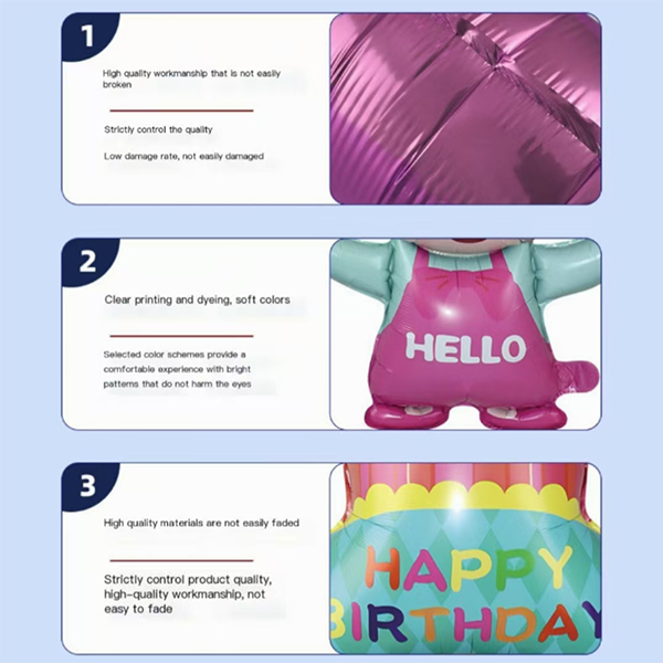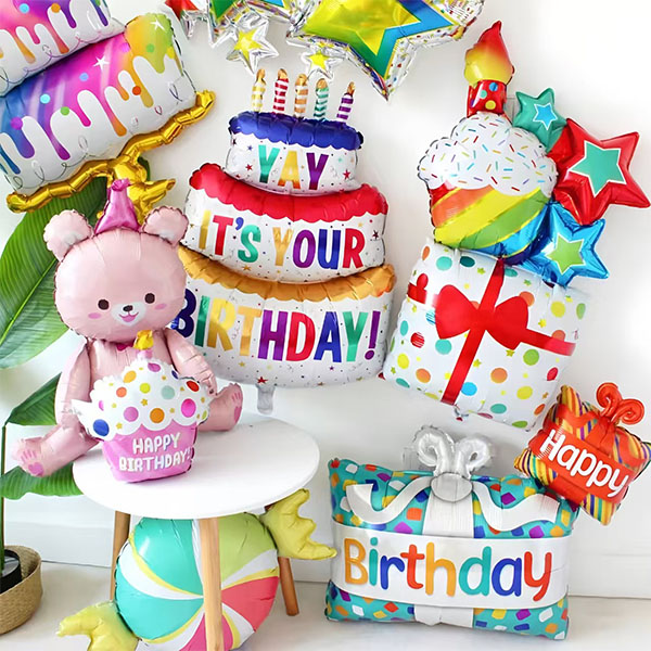 Przyjęcie urodzinowe to jedna z głównych scen dla folii w kształcie ciasta NIUN®. Dopasowywanie do sztandaru z okazji urodzin sprawia, że motyw urodzinowy jest bardziej oczywisty. Wszystkiego najlepszego z okazji urodzin, zwykle przyciąga wzrok słów „Wszystkiego najlepszego”. Czcionki są różne. Są kreskówka, artystyczne i inne style. Kolory też są bogate. Mogą dobrze dopasować różne balony w kształcie tortów urodzinowych.