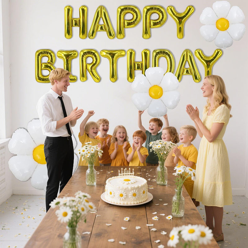 Wszystkie balony folii w kształcie stokrotki mogą być zawieszone lub przyklejone do ścian lub tła, a także mogą być używane z girlandy balonowych.