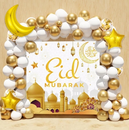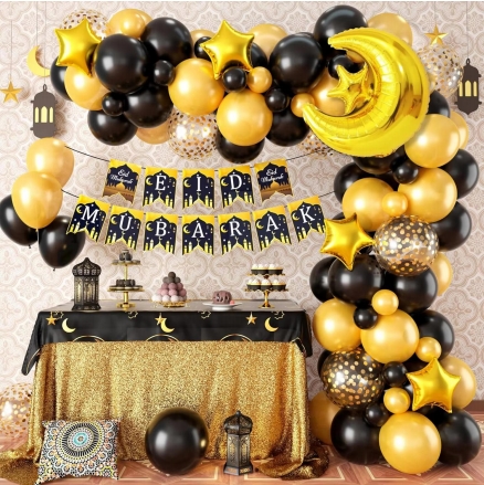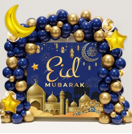 Marka NIUN® Eid al-Fitroon Balloon Garland Zestawy zwykle zawierają różne przedmioty, takie jak balony lateksowe o tematyce Eid i balony o różnych rozmiarach i kolorach, tło, obrusy, linie wędkarskie, łańcuchy balonowe, plamy klejowe, ręczne lub elektryczne pompy powietrzne itp. EID Al-Fitron Garland konsumenci.