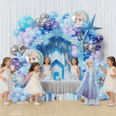 Łuk balonowy z motywem Krainy Lodu w stylu Disneya, pokochany przez dzieci i dorosłych na całym świecie.