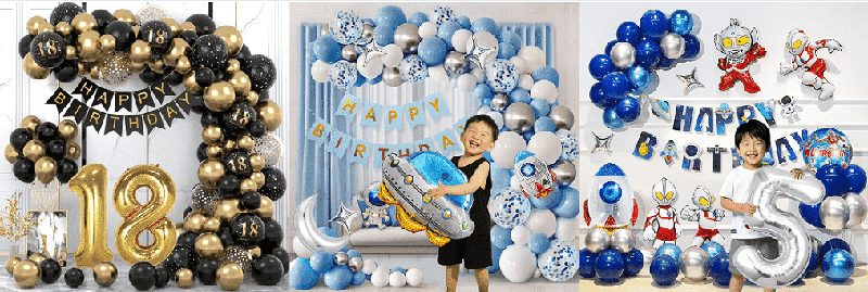 Podstawowym stylem jest balon lateksowy Happy Birthday w tym samym lub uzupełniającym kolorze, zBalony foliowe z okazji urodzinLubbalony foliowe z cyframi. Klasyczne modele obejmują balon żelowy w proszku Makaronik różowy balon foliowy Happy Birthday, czarny balon lateksowy ze złotym balonem foliowym. Balony lateksowe można nawlec w łańcuszek balonowy i zawiesić na ścianie lub suficie, a balony foliowe stanowią centrum wizualne i niewielką ilość ozdób wstążkowych, aby szybko stworzyć prostą i teksturowaną atmosferę imprezy.