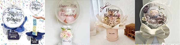 Jedną lub więcej róż można umieścić w balonie Bobo. To klasyczny sposób na pokazanie romantycznych uczuć. Przezroczysty balon jest jak okładka. Sprawia, że kwiaty wyglądają bardziej jasno i piękniej. Czerwone róże oznaczają pasję. Różowe róże oznaczają miękkie i delikatne. Wygląd jest lepszy z światłami LED. To dobry prezent dla dziewczyny w jej urodziny.
