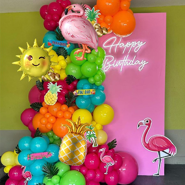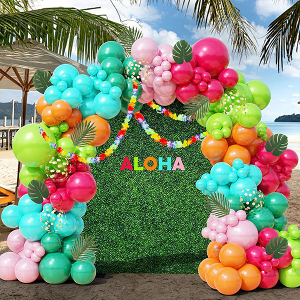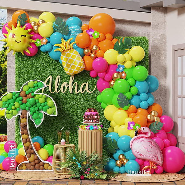 Ten hawajski zestaw girlandy balonowej wykonany jest z kolorowych balonów lateksowych. Żywe kolory sprawiają, że idealnie nadaje się na przyjęcia urodzinowe dla dzieci. Jest również dostępny w różnych stylach. Niestandardowe zestawy łuków balonowych Tropical można dostosować i zmontować według własnego stylu. Zachęcamy do tworzenia własnych, niepowtarzalnych projektów i eksperymentowania z nimi, aby Twoje kolejne wydarzenie zakończyło się pełnym sukcesem.