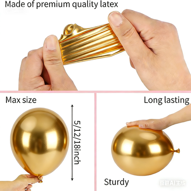 Balony lateksowe, które oferujemy do zestawu girland balonowych z dziurką, wykonane są w 100% z naturalnego lateksu, importowanego z Azji Południowo-Wschodniej. Ich rozmiary to 5 cali, 10 cali, 12 cali i 18 cali. Układając je w różnych rozmiarach, można stworzyć atrakcyjny efekt warstwowy.