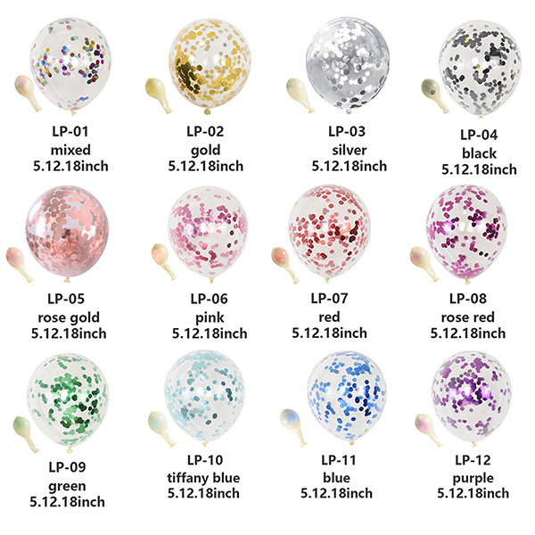 Nasze główne rozmiary balonów konfetti to 5 cali, 10 cali, 12 cali, 18 cali, 36 cali. balony konfetti również należą do balonów lateksowych, balony konfetti dzielą się na dwa rodzaje, jeden to balony konfetti z folii aluminiowej, drugi to balony konfetti z papieru. Balony z brokatem foliowym wyglądają jaśniej, a balony z folii papierowej wyglądają bardziej miękko. Zwykle oba rodzaje balonów konfetti można używać samodzielnie na przyjęciach urodzinowych, weselach, przyjęciach dla dzieci itp. Można je również wykorzystać do dekoracji zestawu balonów, dodadzą dużo koloru zestawowi balonów, również sprawią, że dekoracja doskonalsza i piękniejsza.
