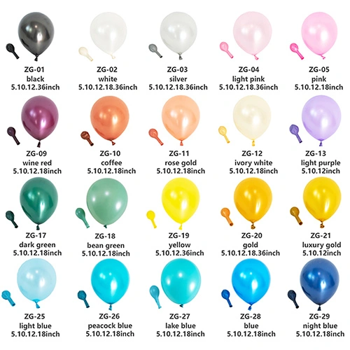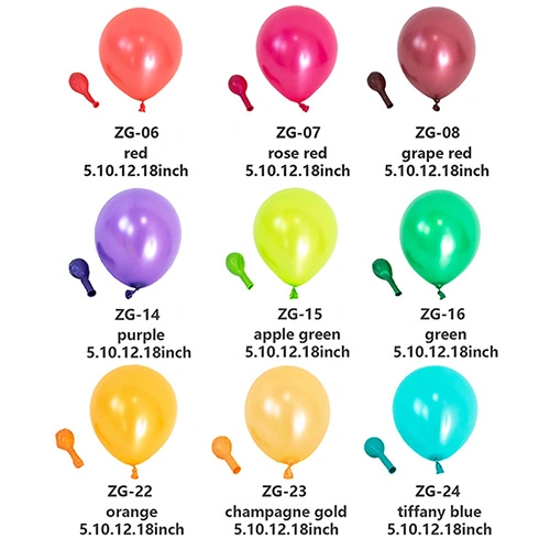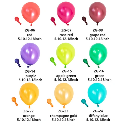 Balony perłowe:Dzięki miękkiej, gładkiej powierzchni i połyskującemu perłowemu pudrowi balony te charakteryzują się najdelikatniejszymi i najbardziej żywymi kolorami, dzięki czemu idealnie nadają się do dekoracji ekskluzywnych wydarzeń, takich jak wesela i Walentynki.