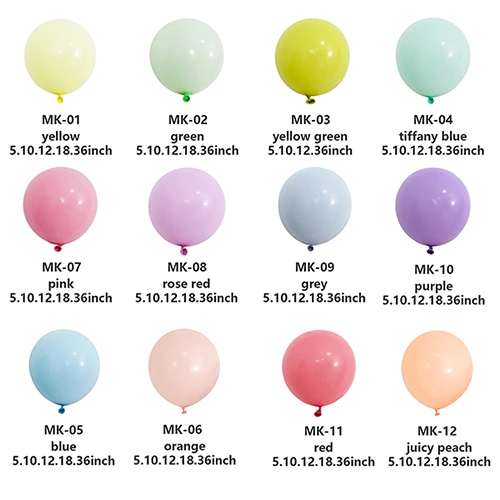 Balony Macarona:Miękkie i jasne kolory, zwane także balonami w kolorze cukierków, są ulubieńcami dzieci