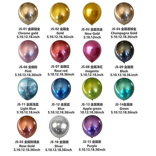 Balony metaliczne:Dzięki lustrzanemu wykończeniu o wysokim połysku oraz przyciągającym wzrok teksturom i kolorom, są to najbardziej wszechstronne balony lateksowe do wykorzystania przy dekoracjach przyjęć, niestandardowych nadrukach i nie tylko.