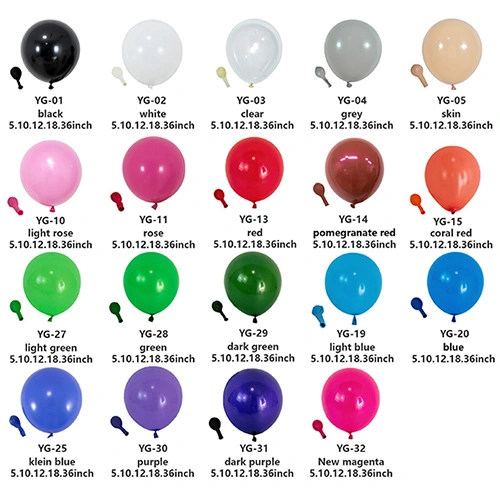Nasze balony lateksowe są zwykle produkowane w rozmiarach 5 cali, 10 cali, 12 cali, 18 cali i 36 cali. Jeśli masz specjalne wymagania i chcesz dostosować balony do indywidualnych potrzeb, możemy zorganizować produkcję w innych rozmiarach.