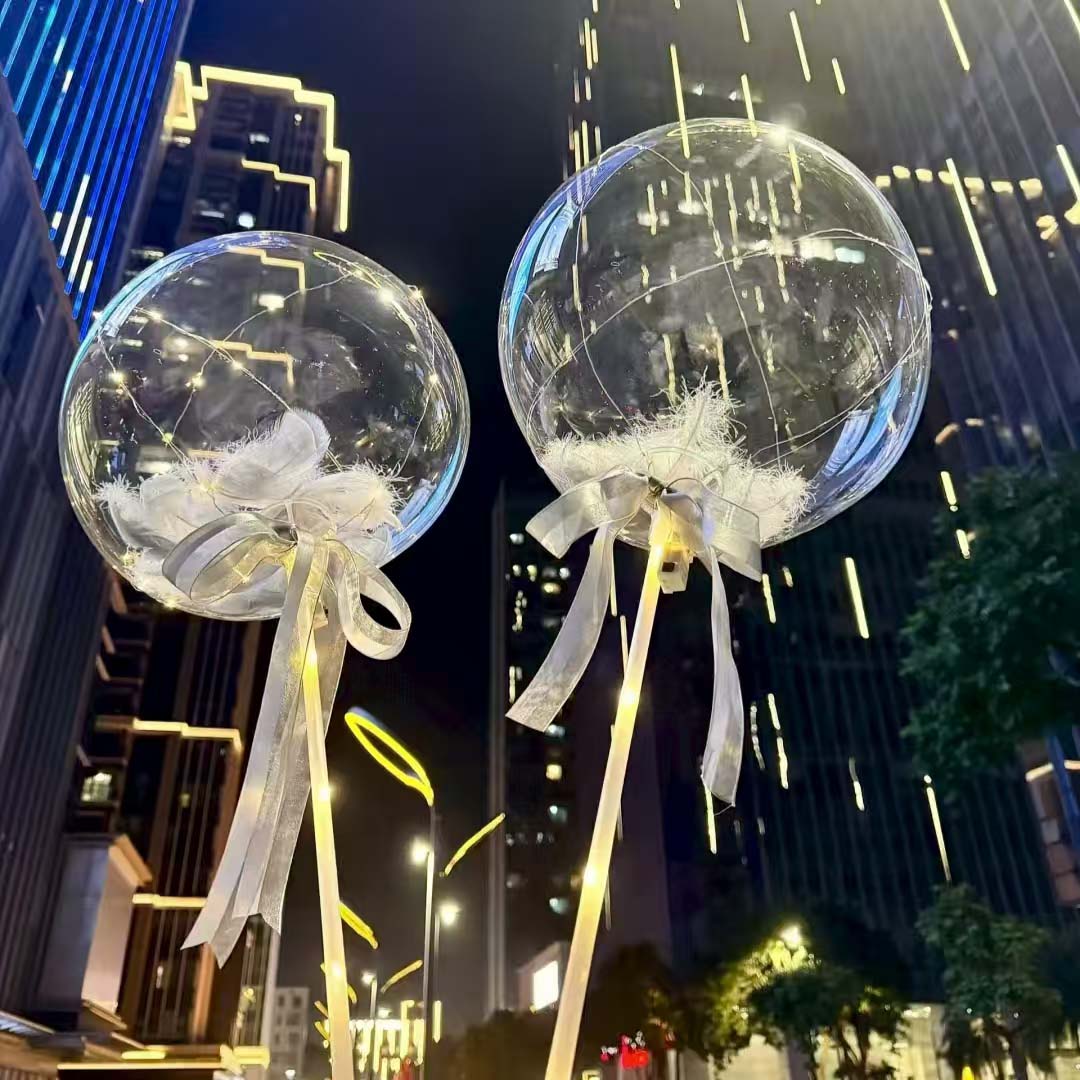 Chiny prowadzone przez bobo wypełnione pióramiodrywa się od tradycyjnych projektów balonowych, używającPrzezroczysty balon bobojako „pojemnik”. Posiada kolorowe pióra lub jednoczęściowe pióra w środku, w połączeniu z ukrytym paskiem światła LED (dostępnym w trybach stałych, migających i innych). Balon zostaje napompowany. Staje się okrągły i pełny. Wyraźnie pokazuje żywy wygląd piór. Jest dzień. Naturalne kolory piór mieszają z światłem i cieniem. Dodają do sceny miękki i elegancki charakter. Jest noc. Paski światła LED włączają się. Pióra są pokryte blaskiem. Tworzą magiczny nastrój. Klienci mogą swobodnie wybierać kolory piór. Wybierają na podstawie tego, czego potrzebuje scena. Na przykład romantyczne motywy weselne mogą używać różowych i białych piór. Imprezy dla dzieci mogą używać mieszanych piór w kolorze tęczy. Pomaga to wywołać wyobraźnię i zabawę.