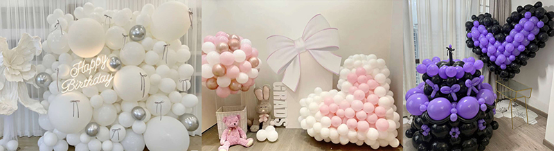 Różne rozmiary można używać razem. Małe balony mogą być używane jako szczegóły dekoracji. Duże balony mogą być używane do łuku balonowego lub girlandy balonowej. Efekt wygląda na uderzające. Gdy stosuje się z balonami Bobo, metalicznymi balonami lub balonami foliowymi, wygląd ma więcej warstw. Styl staje się bogatszy. Zastosowanie jest bardzo szerokie. Można go używać na weselach. Można go używać na przyjęciach urodzinowych. Można go również używać na imprezach świątecznych. Działa jako główna dekoracja lub dekoracja szczegółowa.