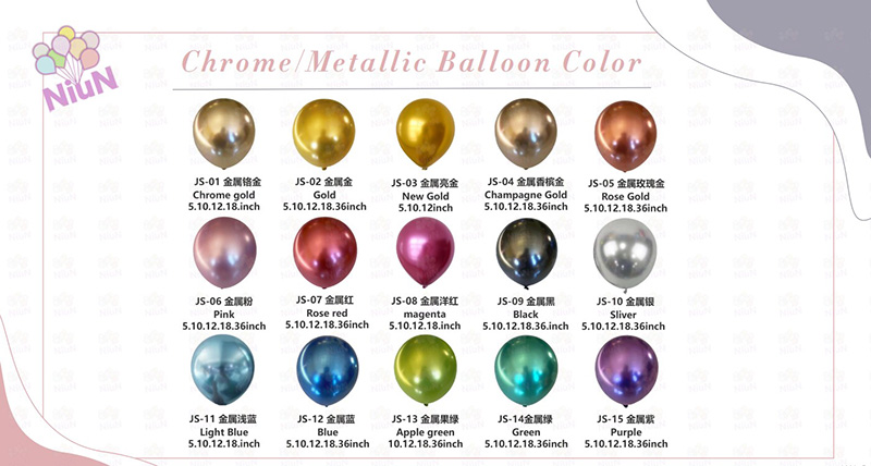 Kolor: Metaliczne balony mają 15 kolorów. Można je dowolnie mieszać, uzyskując nieskończone efekty wizualne.