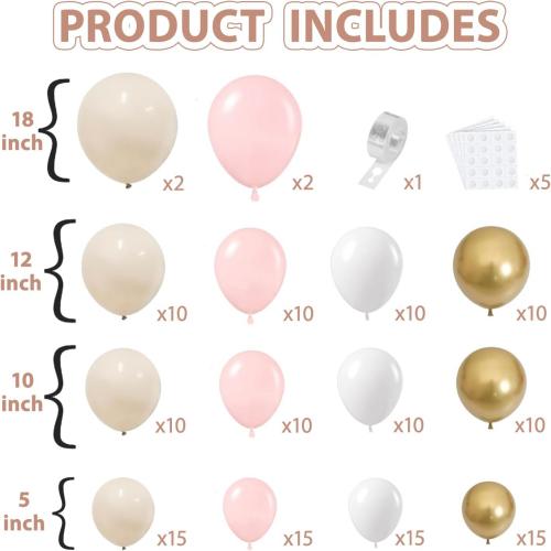 Jako jeden z najpopularniejszychzestawy łuków balonowychna rynku, na 10 klientów, około 8 z nich wybierze ten styl. Dzieje się tak, ponieważ nasz wysokiej jakości różowo-beżowo-biały balon doskonale nadaje się na przyjęcie weselne, przyjęcie urodzinowe, baby shower, przyjęcie z okazji ujawnienia płci i tak dalej, dzięki czemu są kochane przez klientów.