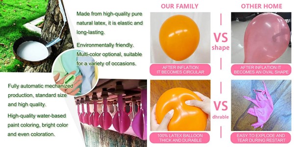 Wysokiej jakości materiał nadający się do ponownego użycia: Materiał, którego używamy do produkcji balonów lateksowych, jest nietoksyczny i bardzo bezpieczny (100% naturalny lateks). Balony najwyższej jakości sprawią, że łuk balonowy będzie trwał dłużej, niż sobie wyobrażasz.