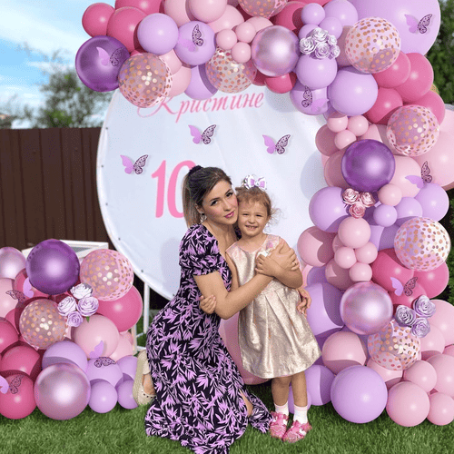 Różowo-fioletowy zestaw girland balonowych to jeden z najlepiej sprzedających się zestawów balonów w NiuN®. Dzięki atrakcyjnej kolorystyce i błyszczącej powierzchni jest uwielbiany przez wiele osób, zwłaszcza dziewcząt. W zestawie znajdują się różne balony lateksowe. Ich kolor jest różowy i fioletowy. Oprócz zwykłego balonu lateksowego dodaliśmy także balony konfetti, aby zwiększyć liczbę warstw.