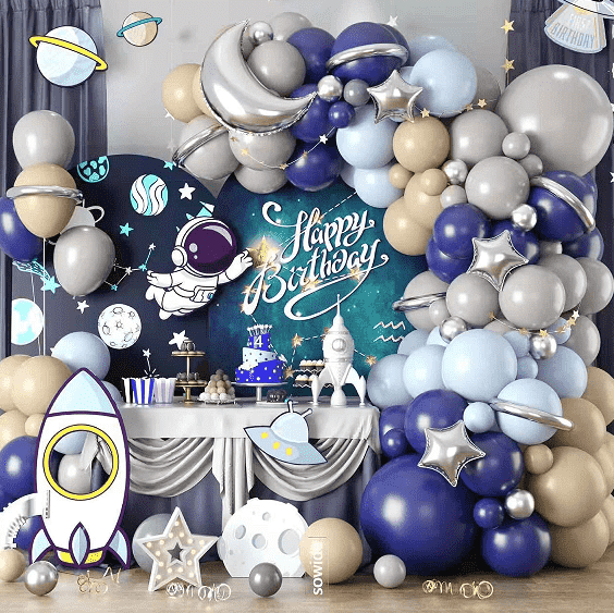 Balon lateksowy astronauta kosmiczny, wybór 100 naturalnych surowców lateksowych, bezpieczny i przyjazny dla środowiska, bezzapachowy, dzięki międzynarodowemu certyfikatowi bezpieczeństwa, odpowiedni dla bliskiego kontaktu z dziećmi. Balon ma doskonałą rozciągliwość, jest pełny i okrągły po napompowaniu, niełatwy do złamania i dużą trwałość. Kolory to głównie błękit głębokiego kosmosu, czerń gwiaździstego nieba, biel Drogi Mlecznej i czerwień Marsa, ozdobione sylwetkami astronautów, orbitami planet, śladami rakiet i innymi drukowanymi wzorami. Styl jest bardzo spójny z tematyką kosmiczną i cieszy się dużym stopniem rozpoznawalności. Może ozdobić osobno pulpit i ścianę, a także można go połączyć z balonami foliowymi, aby wzbogacić poziom dekoracji. Jest to idealny wybór na dekoracje na przyjęcia urodzinowe dla dzieci, szkolne zajęcia popularnonaukowe i wystawy o tematyce kosmicznej w centrach handlowych, z łatwością tworząc marzycielską i chłodną atmosferę kosmiczną.