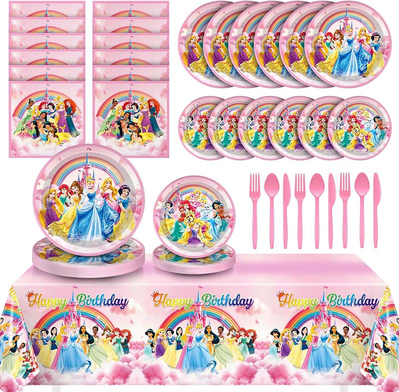 2. Oferujemy spersonalizowane zastawy stołowe w różnych motywach, takich jak zapasy stołowe Mickey Party, Disney Princess Paperable Paper Paper, zapasy stołowe na imprezie, słodkie zastawa stołowa z okazji urodzin kreskówek i wiele innych. Dostosowywanie jest możliwe, aby zaspokoić różnorodne potrzeby klientów.