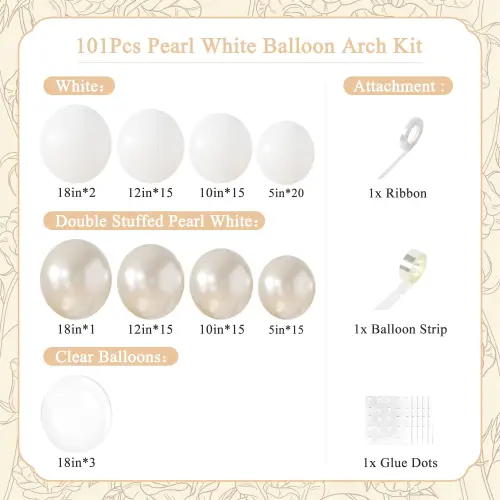 Wszystkie nasze zestawy łuków balonowych nie ograniczają się do jednego scenariusza, zestaw girland balonowych marki Niun® jest w dużej mierze zgodny z preferencjami użytkownika. Białe balony możesz łączyć z różowymi balonami jako dekoracje na przyjęcie urodzinowe dla dziewcząt lub podwieczorek. Balony biało-niebieskie możesz także wykorzystać jako dekoracje na baby shower lub urodziny chłopców. Jeśli podoba Ci się ten biały łuk balonowy weselny, możesz go wykorzystać jako dekorację balonową na przyjęcie urodzinowe lub dekorację balonową na przyjęcie z okazji baby shower.